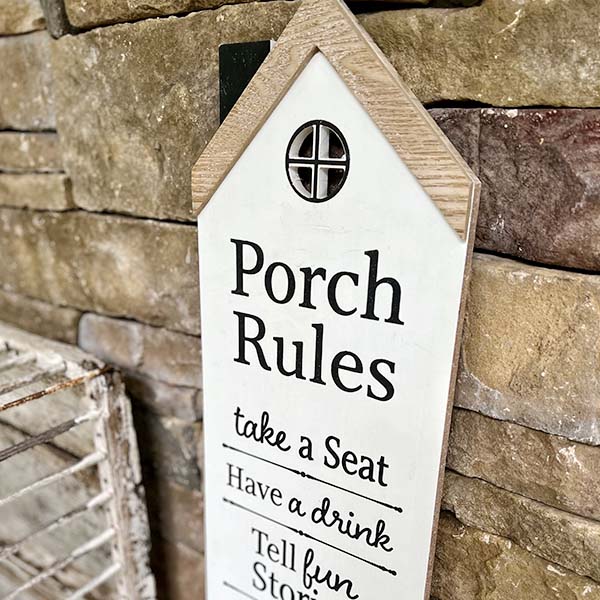 We are SUPER EXCITED about today's deal that is a FRACTION of the cost in comparison to other retailers!!! Get ready to take your porch to the next level with our newest house-shaped sign. This Porch Rules Sign is sure to stand out among your décor and we are so happy to have found this treasure for you guys!