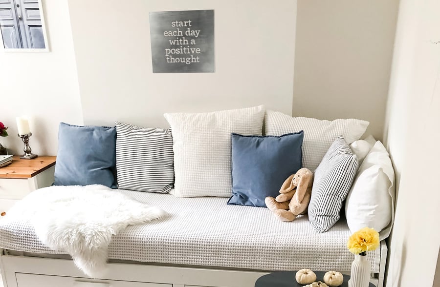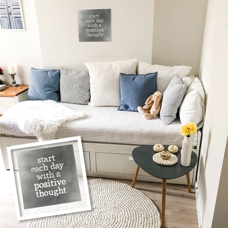 We are lovers of décor that enrich your home with personality and character... and this sign does just that!! We ADORE the font of the lettering and the sweet message! This sign reads “start each day with a positive thought” and we couldn’t have said it better!