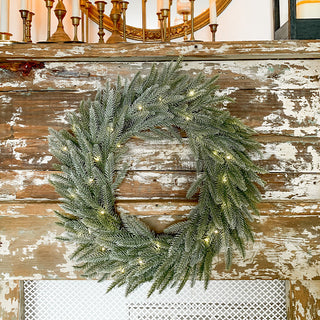 Crafted with meticulous attention to detail, this wreath is adorned with a delicate array of twinkling lights that capture the enchantment of the season. Its lush greenery creates a warm and inviting focal point for your holiday decor.