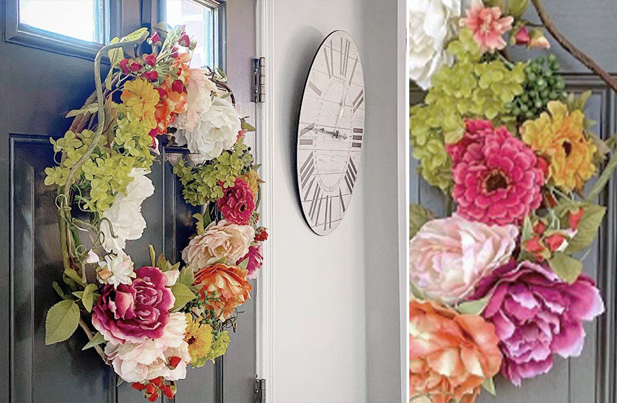 We are looooving everything about this wreath!!! The bright, beautiful colors and natural texture will not only make your beautiful abode feel fresh and oh so inviting, but also add the perfect touch of spring to your home!