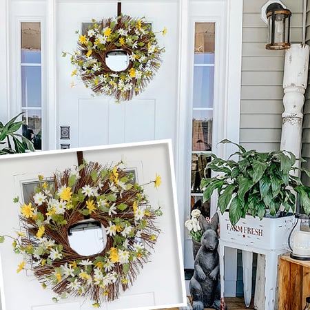 Today’s fresh new steal features a lovely blend of bright yellow and white flowers upon a bed of green foliage fit to compliment any space! This wildflower wreath piece will add a pop of color and is sure to brighten up ANY room!