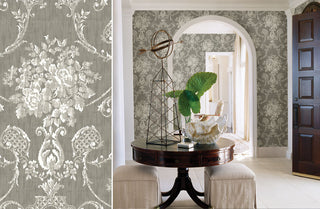 Update your space with this chic and French inspired floral wallpaper! The elegant design gets a fresh look with monochrome shades of grey OR deep indigo background with a lighter blue print! Pair with an intricate ikat print and we are seriously in LOVE!