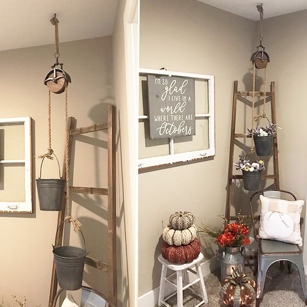 Give your home or garden a unique look and vintage farmhouse flair with our beautifully crafted bucket pulley system. Nothing will add as much charm and accentuate your space like the rustic design and gorgeous detailing of this stylish décor piece.