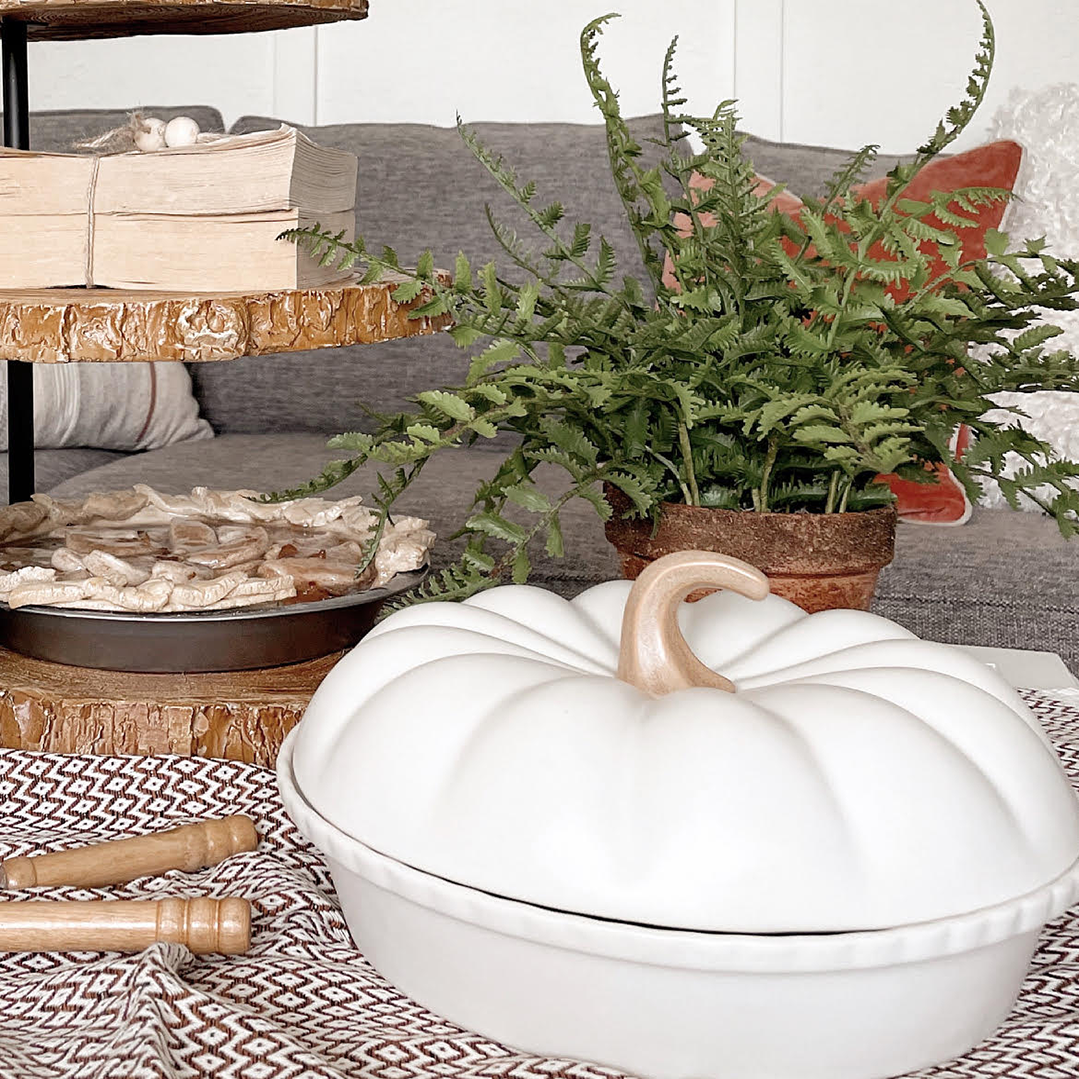 Embrace the warmth and coziness of the season with our Pumpkin Shaped Pie Dish, a delightful and functional accent that allows you to serve up sweet treats that truly celebrate the flavors of fall.
