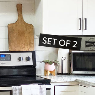 Add style to your farmhouse table by giving your plated appetizers or desserts a little lift OR use them to show off your potted herbs and flowers on your kitchen counter! We can see this wooden cutting board set laid out on your kitchen counter for all your get-togethers and parties. Add these to any wall for some farmhouse charm and a rustic display!