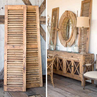 This set of 2 shutters is a whopping SIX FEET TALL! You can't get any better than that! These will really draw the eye in and UP to create the illusion of taller ceilings... We love the simplicity of the reclaimed wood and can just imagine these among your other vintage steals! Simply lean these shutters against the wall behind your favorite accent chair and side table and create the perfect reading nook... Hang these on any wall to create a huge focal point that exudes Farmhouse Charm... Feeling crafty?? Turn these horizontal and add your favorite rustic hooks along the bottom edge to turn these into vintage coat hangers... an quick DIY project! :)