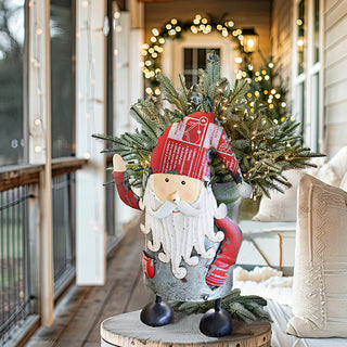 Add a unique touch to your holiday decor with our Recycled Iron Santa with Military Canister. This eco-friendly Santa statue combines rustic charm with a touch of history, crafted from reclaimed military canisters for a one-of-a-kind festive decoration.