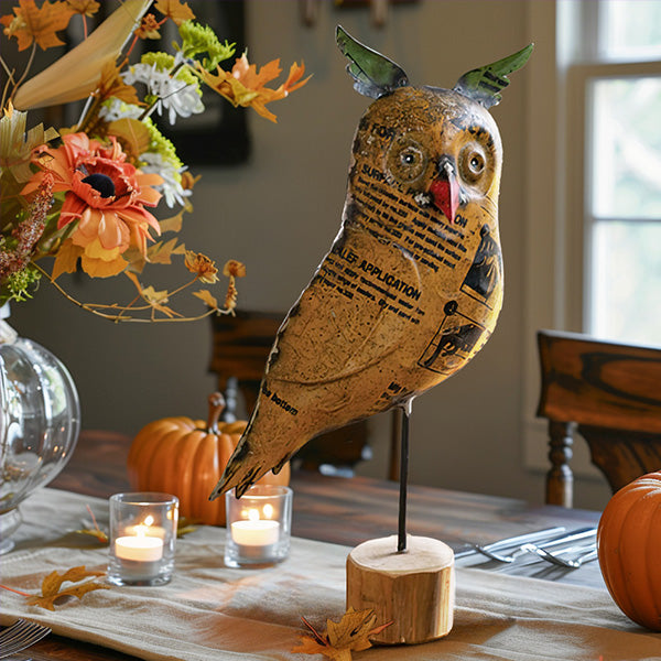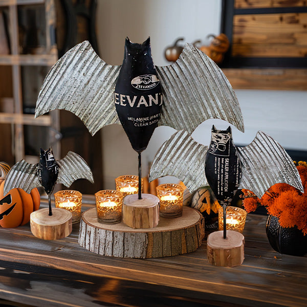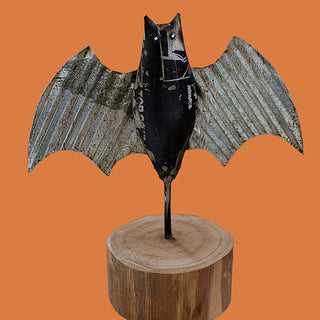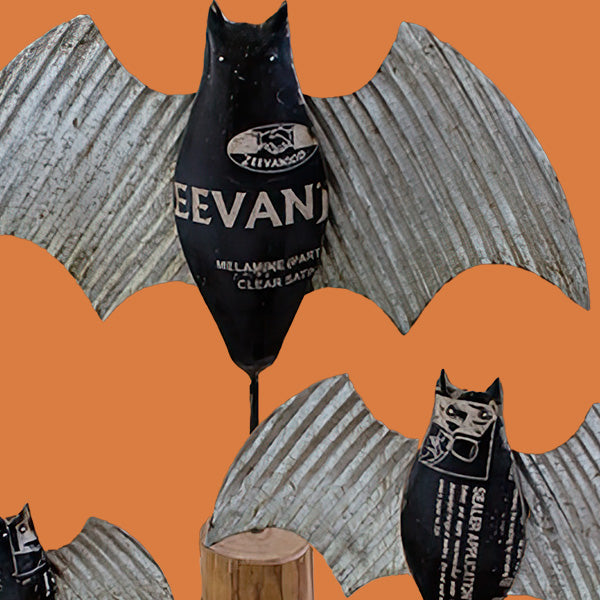 Meet the Recycled Metal Spooky Friends, your choice of either an eerie owl or a group of mischievous bats, perfect for adding a sustainable twist to your Halloween decor! Handcrafted from recycled materials, these unique pieces bring a touch of eco-friendly charm and spooky fun to your festive celebrations.