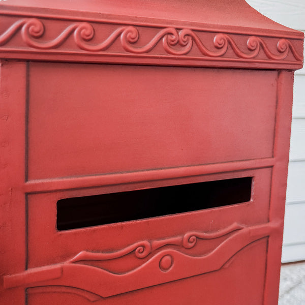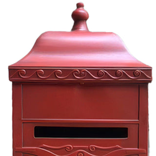 • Vintage Style Finish – The distressed red paint and ornate top finial give it the look of a classic European mailbox.
