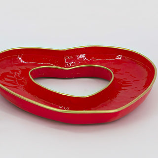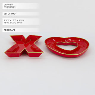 Add a playful twist to your decor with our Red XO Metal Serving Trays, a charming set that pays homage to love's most enduring signature. The classic "X" and "O" symbols have been sealing love letters and sweet messages for generations, representing kisses and hugs that bridge any distance. These striking metal trays transform the casual "XOXO" into elegant serveware, each piece meticulously crafted with a food-safe lustrous red finish and gleaming gold trim to create a perfect balance of festive charm and refined elegance that elevates your appetizers, sweets, and holiday treats.