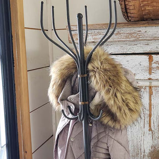 This sturdy 73 Inch Natural Wood and Forged Metal Coat Rack comes with 12 HOOKS, allowing you to easily add SO MUCH instant storage space anywhere you need it! This coat rack is designed to be classic and timeless but with a fresh take on modern day farmhouse style! This makes it PERFECT to effortlessly flow with any type of decor!