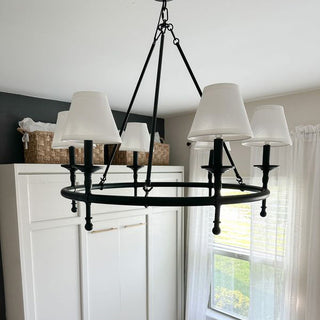 Chandeliers are one of the easiest ways to totally transform any space! Today's Refined Farmhouse 6 Light Chandelier with Shades has beautiful contrasting elements that will blend cohesively with any decor and will have you feeling like your space is straight from a magazine or TV show!