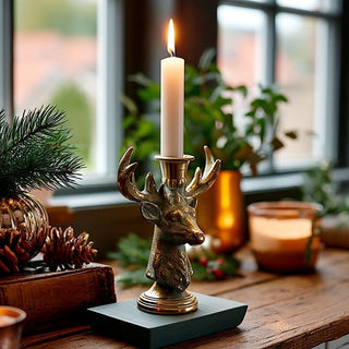 Bring timeless holiday charm to your tabletop or mantel with our Antique Finish Reindeer Taper Candle Holder. This beautifully detailed piece features a proud reindeer silhouette with a vintage-style finish that looks straight out of an old-world holiday market. Designed to hold a single taper candle, it adds warm glow and woodland whimsy to your seasonal décor.