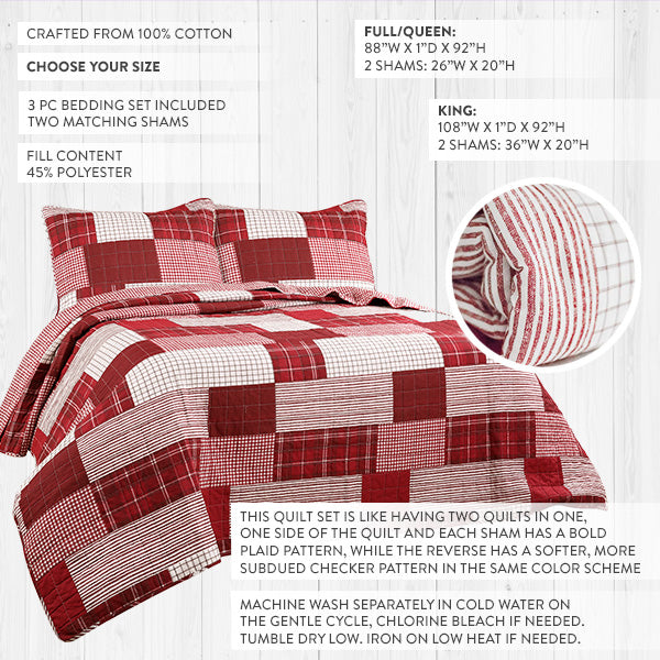 Red Quilt King: 108"W x 1"D x 92"H - Packed: One Set or One per package (you will receive 2 shams and 1 quilt of your size choice)