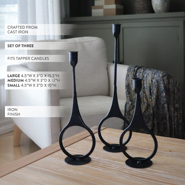 Create a warm and inviting ambiance with our Ring Base Cast Iron Taper Candle Holder, Set of Three. This trio of sturdy cast iron candle holders brings a rustic farmhouse charm to any setting. The circular bases symbolize the perfect union of functionality and beauty, much like the incredible daily deals we offer just for you!