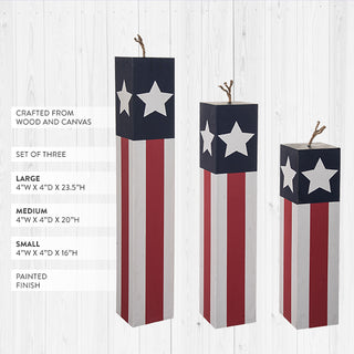 Add a patriotic flair to your home decor with our Patriotic Stars and Stripes Rocket Wood Decor, Set of 3.