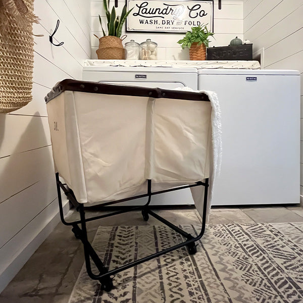 - Dual compartments for easy sorting of lights, darks, or family members' laundry.