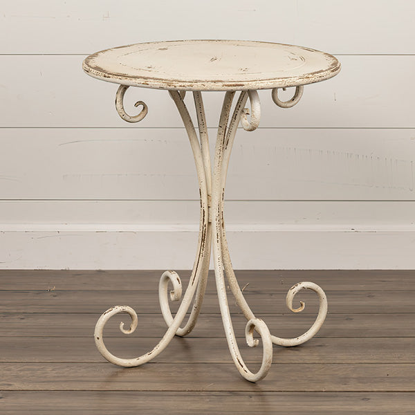 Introducing the exquisite Romantic Scrollwork Accent Table! This table is pure, delicate charm. We are head-over-heels for the beautifully distressed cream finish and the graceful, scrolled metal legs that give it a whimsical, vintage look. It’s the perfect size for a single cup of coffee, a small plant, or a stack of your favorite magazines next to a cozy chair!