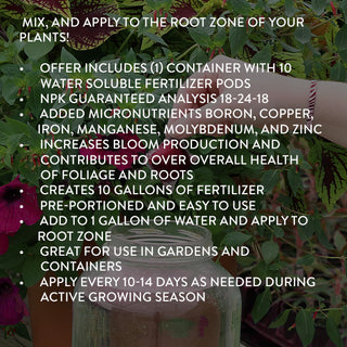 ·        Offer includes (1) container with 10 water soluble fertilizer pods