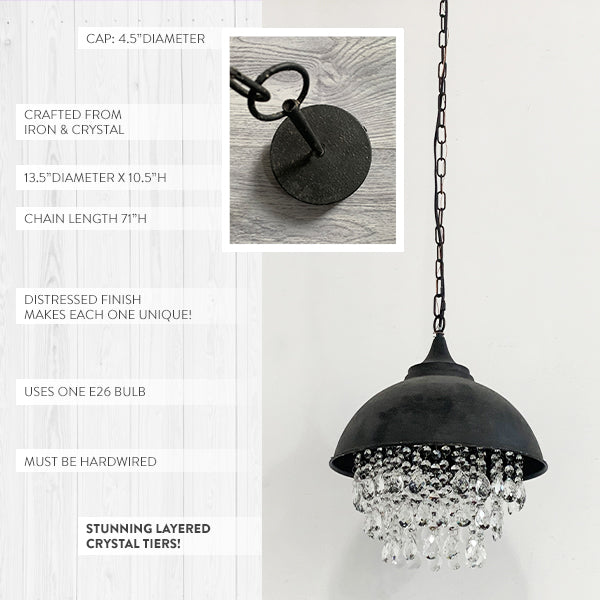 Cottage-Chic Appeal: The marriage of industrial design with crystal embellishments results in a cottage-chic chandelier that captures attention and enhances the overall aesthetic of your home.