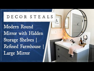 Add this Round Storage Mirror to ANY empty wall to add depth and create space in your home. AND the best part is you can store all your daily necessities in a way that keeps clutter hidden.