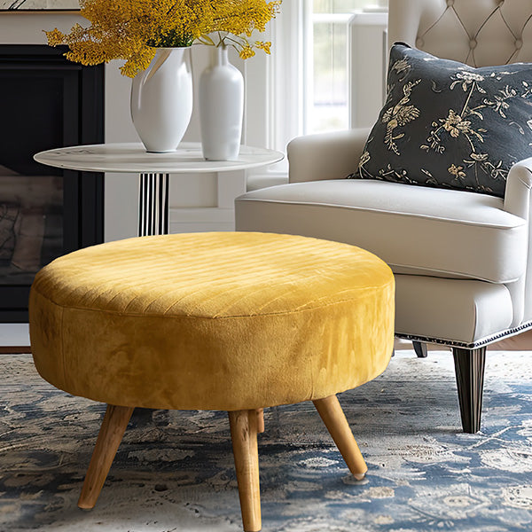 Place it as a footrest or an extra seat, and enjoy its plush comfort and rich color. The Honey Round Velvet Ottoman isn't just an ottoman; it's a statement piece that combines aesthetic charm with practicality.