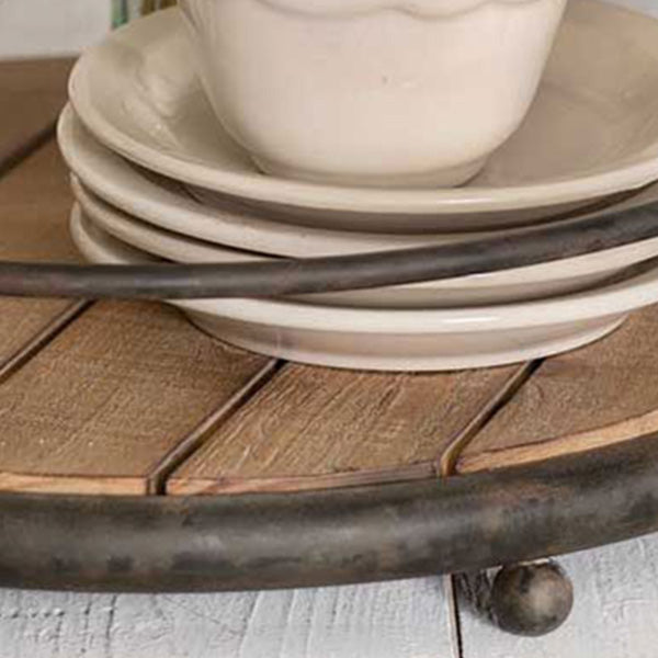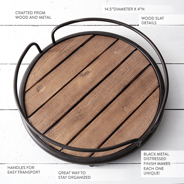 Place this Round Wooden Serving Tray on your coffee table as a centerpiece, on your ottoman holding remotes, dress it up with some potted herbs and place it on your kitchen counter to display fresh ingredients for your baked goodies (YUM!!) OR use it to serve drinks at parties!