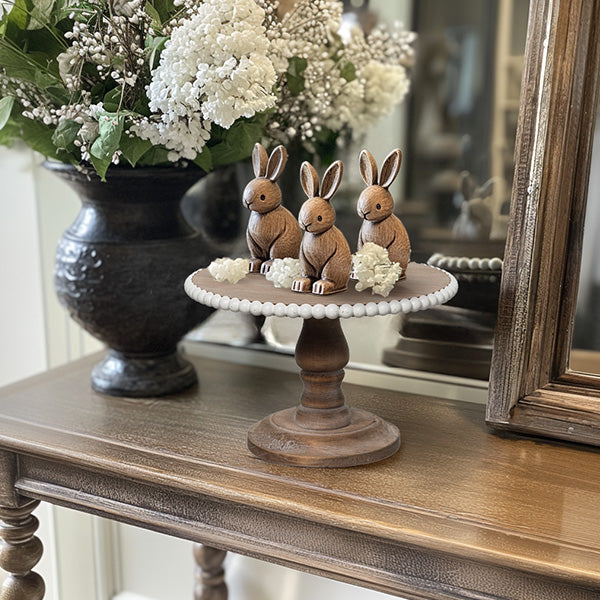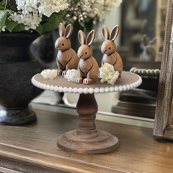 This little beautiful Wooden Display Stand combines natural wood charm with an adorable white beaded edge that just screams “put something delicious on me!” The sturdy pedestal base keeps your wrapped treats, trinkets, or treasures perfectly elevated and on display. Whether you're showcasing grandma's apple pie, your favorite succulents, or those fancy guest soaps, this versatile stand makes everything look extra special. Farmhouse style never looked so good—or made your wrapped desserts look so tempting!