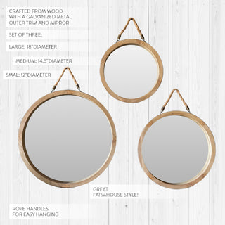 Small: 12" Diameter - Packed: One SET Per Package (you will receive THREE round mirrors with rope hangers)