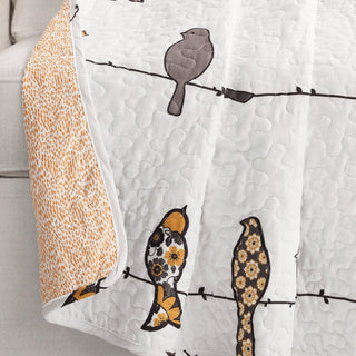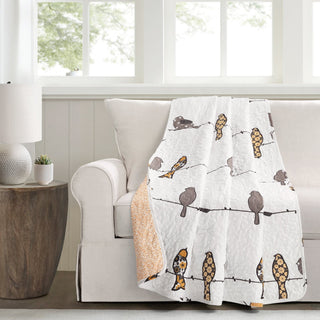 You can't help but fall in love with this fun design of birds with boho patterns on their bodies sitting along wires. The design of this Rowley Birds Throw will light up your bedroom or living room. The reversible throw blanket features a textured look printed on the back side.