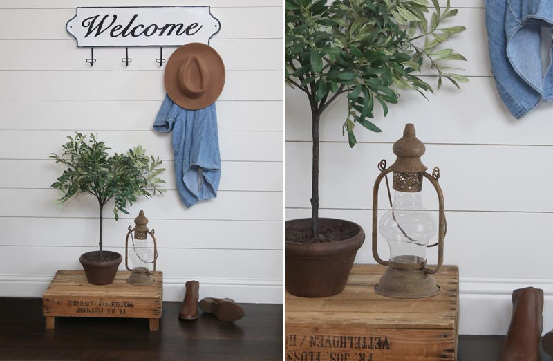 This piece could be easily incorporated into any farmhouse or vintage setting! Decorate your mantel your entryway or even your kitchen! The possibilities are truly endless!! WOW it's just so perfect for a traditional or modern farmhouse!! It's so so versatile!! We love the idea of adding a battery operated candle inside to create the perfect lighting as shown in the photos above! The rustic finish on these lanterns resembles the look of lanterns used in the 1700's! So unique and so wonderful! We know you guys will fall in love with these beauties!