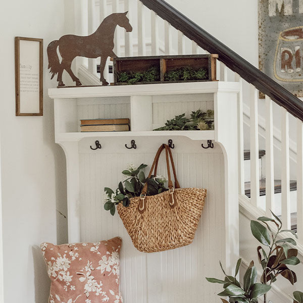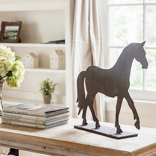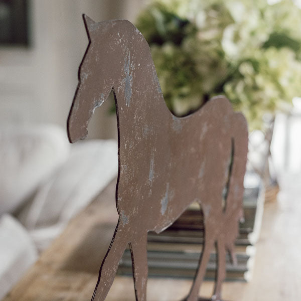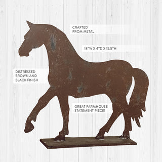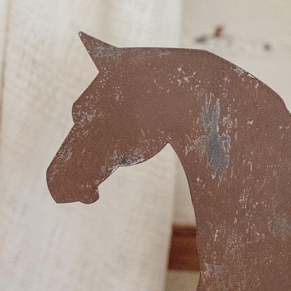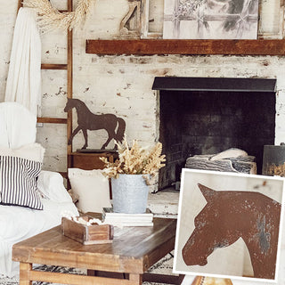 This unique sculpture is sure to welcome compliments from your friends and family! This distressed, Rusted Patina Horse Silhouette Statue would look flawless in your living room to add some charm or in a nursery to welcome your new addition to the family! Place this on your decorated mantel or on your entryway table to greet guests. Honestly, the possibilities are endless with this piece and we CAN'T WAIT to see where he ends up!
