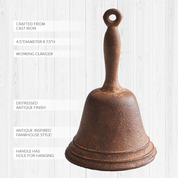 Bring a nostalgic touch to your space with the charming, old-fashioned design of our Rusted Patina Vintage-Inspired Hand Bell. Sometimes it's the small details that really make your room feel warm, inviting and thoughtful. This steal will do just that!
