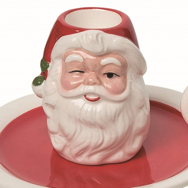 Crafted with nostalgic charm, this candle holder features a vintage-inspired Santa Claus design. Place your favorite candle atop Santa's hat, and let the warm glow illuminate your space, creating a cozy and merry atmosphere.