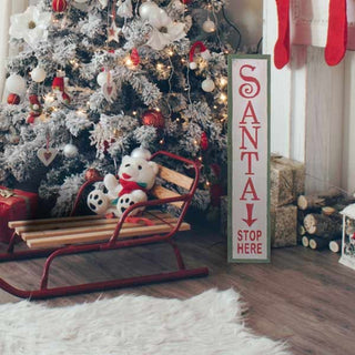 With Santa Claus coming to town we have just what you need to make sure he stops by!! We are absolutely swoooooooning over this adorable Santa Stop Here Sign and will be sure to get everyone in your home in the Christmas spirit! We just can’t get enough of the fun and festive look of our jolly sign AND did you see the size of it?! It’s HUGE! We’re talking a whopping 49” tall! That’ll be sure to get old Saint Nick’s attention!!!