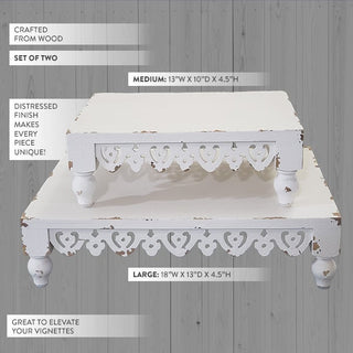 We just know you won't be able to resist these GORGEOUS Scalloped Edge French Country Risers! This set of TWO risers will literally bring your space to new levels and be the perfect eye-catching accent piece for your farmhouse! Risers this beautiful are usually hard to come by for such a LOW PRICE! Just look at the perfectly distressed white finish and chippy details!