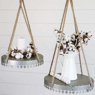 Our Scalloped Metal Hanging Trays have SO much charm and will look even MORE beautiful dressed up with some books or candles! We can imagine them filled with bright greenery fresh herbs and even colorful florals. We LOVE that these would make the perfect home for a fairy garden or even for displaying small succulents or potted plants on a covered porch. Hang them in your home in rooms like your kitchen living room OR even sun room to add some natural color and texture to your favorite spaces. They would even look beautiful as nightstands as I'm sure all of you know hanging nightstands are the newest decor trend!