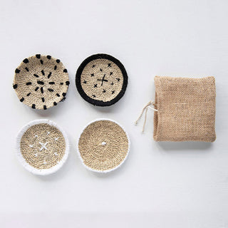 - Packed: One Set Per Package (you will receive FOUR assorted coasters and a burlap bag)