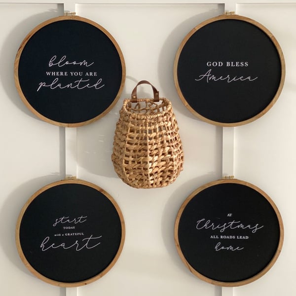 Simple yet beautiful! Our designers outdid themselves when they added the frame of an embroidery hoop on these! I feel that I don't need to tell you that $24.99 for FOUR of this exclusively designed collection is unheard of!