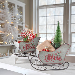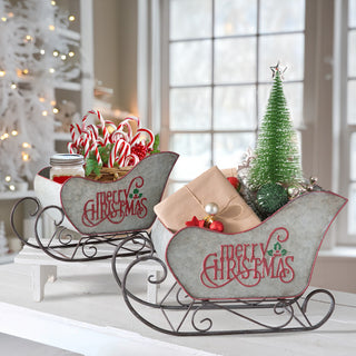 Bring the joy and wonder of the holiday season into your home with our set of 2 Embossed Metal Christmas Sleighs. They are the perfect way to celebrate and spread the festive cheer in style.