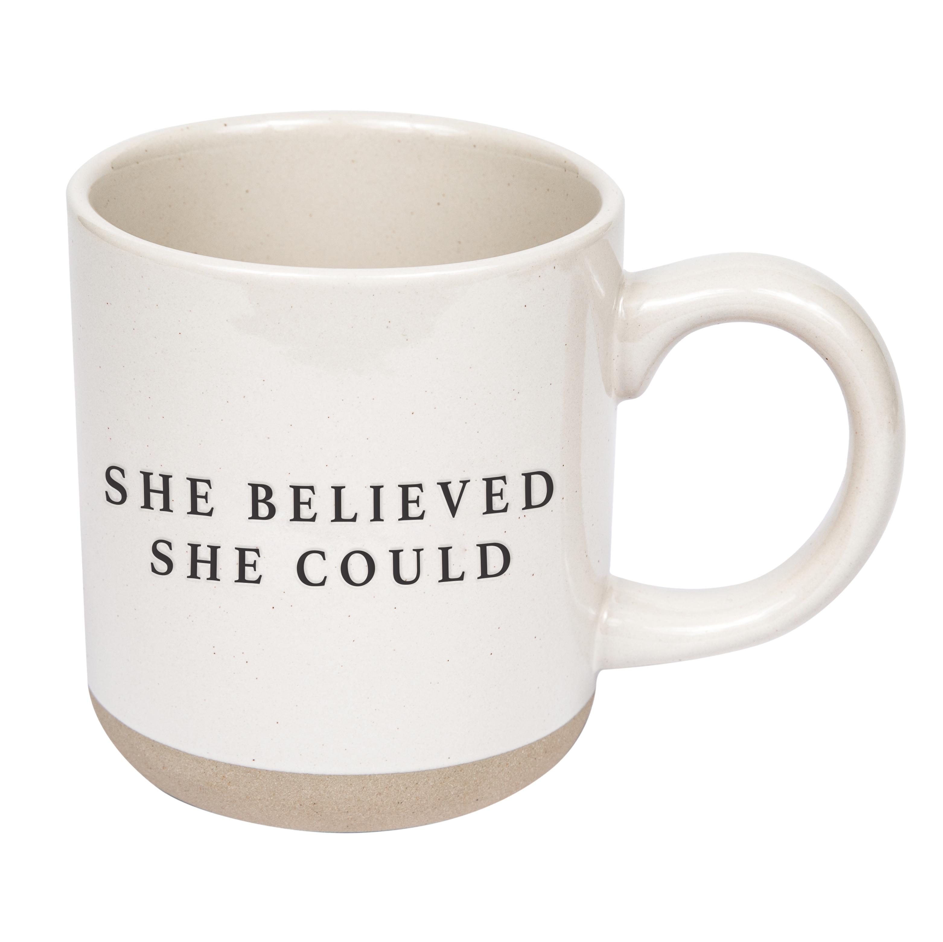 Encourage and motivate yourself each morning with our She Believed She Could Stoneware Coffee Mug. Our stoneware coffee mug has the modern look we know you'll love, plus it's microwave and dishwasher safe. This coffee mug makes a great graduation gift, new job gift, housewarming gift, etc. Get one for your best friend, your sister, or for yourself!