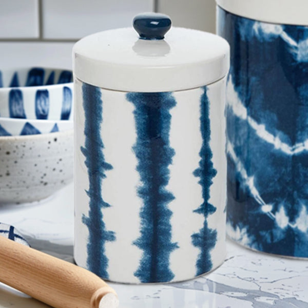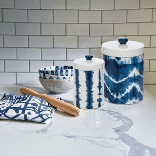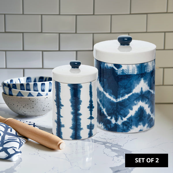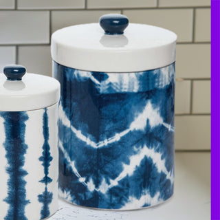 Elevate your home decor with our "Shibori Canisters, Set of 2." These stylish canisters feature intricate Shibori-inspired designs, perfect for adding a touch of elegance and cultural charm to your kitchen or living space.