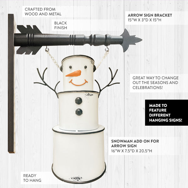 Snowman Add On for Arrow Sign: 9"W x 6"D x 11.5"H