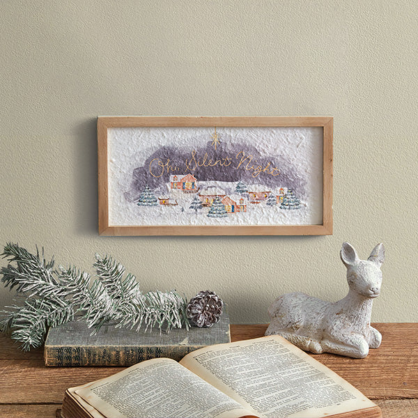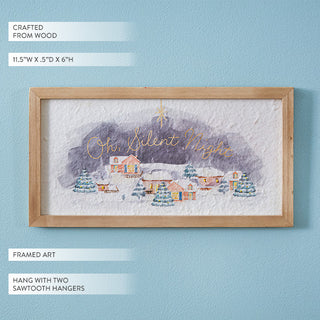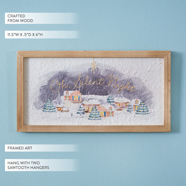 Silent night, holy night, all is calm, all is bright… Bring the serene beauty of the season to your home with our Oh Silent Night Wood Framed Wall Decor. Inspired by the timeless lyrics of “Oh Silent Night,” this piece is a heartfelt tribute to a beloved Christmas classic. The artwork features “Oh Silent Night” elegantly printed in beautiful script, set against a peaceful Christmas village scene blanketed in snow. Evergreen trees add to the tranquil, festive landscape, capturing the warmth and stillness of a perfect winter night.