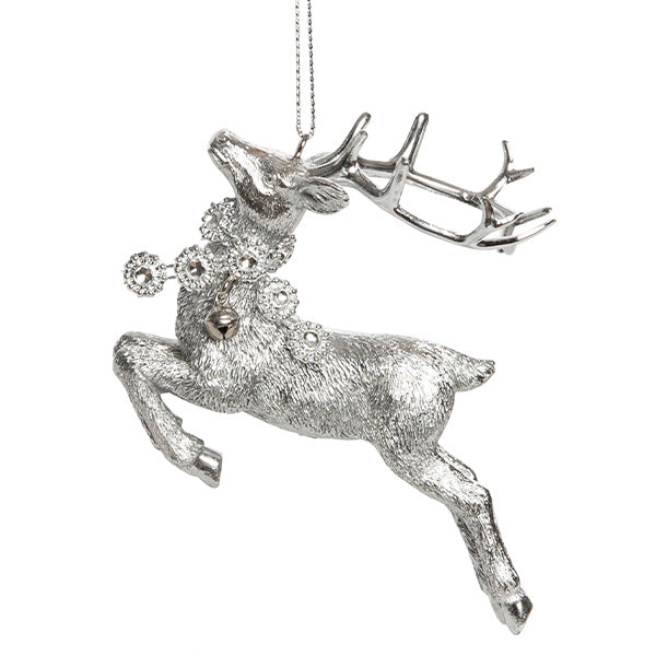 Add a touch of wintry elegance to your holiday decor with this Silver Reindeer Ornament, crafted with intricate detailing and a shimmering silver finish. Perfect for adorning your tree or enhancing a festive centerpiece, it brings a timeless charm to any seasonal setting.