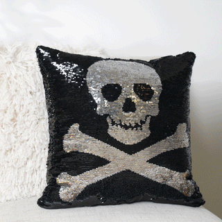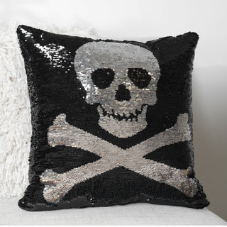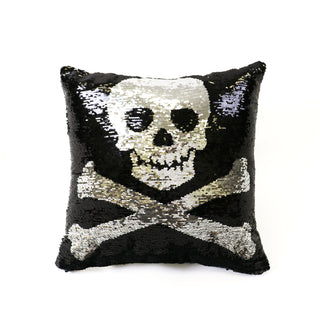 Add some Halloween spookiness to your decor. With its shimmering sequins and skull and crossbones design, this Skull And Crossbones Decorative Pillow is sure to add some Halloween spirit to your space. Whether you're entertaining guests or just want something fun and festive, this pillow is a holiday must-have.