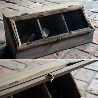 We're in LOVE with this AMAZING vintage inspired wood bin! It’s three divided bins of AWESOME gives you so much space for just about anything and it’s aged wood and glass front makes us swoon even more!!
