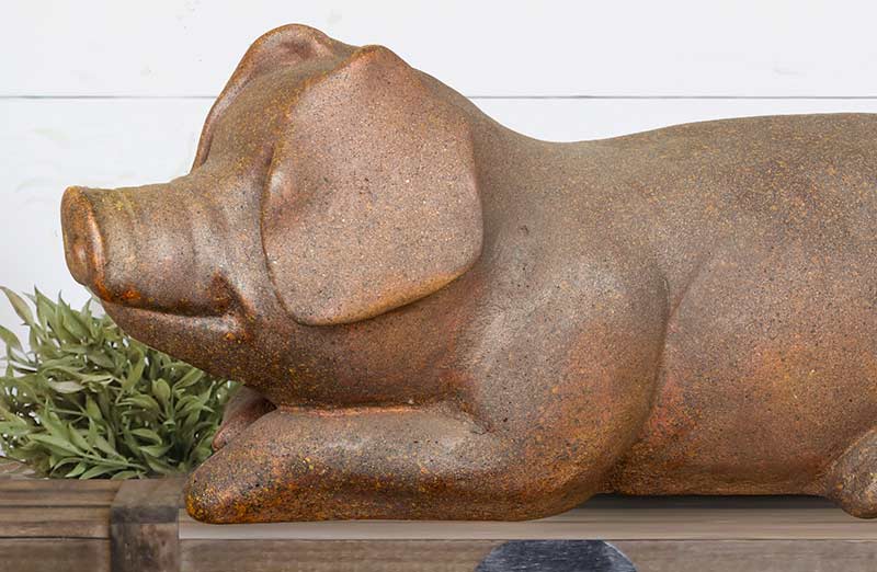 Yippee!! We are in awe at this beautiful smiling pig estate stone statue! This beauty caught our eye right away and we couldn't wait to bring it to y'all! We're naming him Mr. Oinker! He looks like he's just filled his belly and plopped down to enjoy some sun! SOOO adorable!