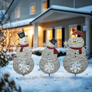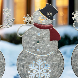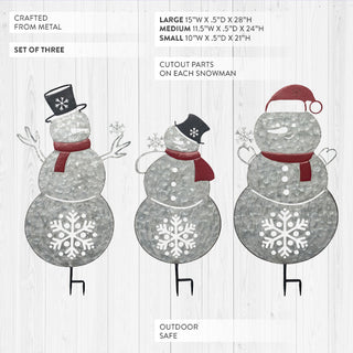 Small: 10"W x .5"D x 21"H - Packed: One set per package (you will receive three Snowman Yard Stakes)