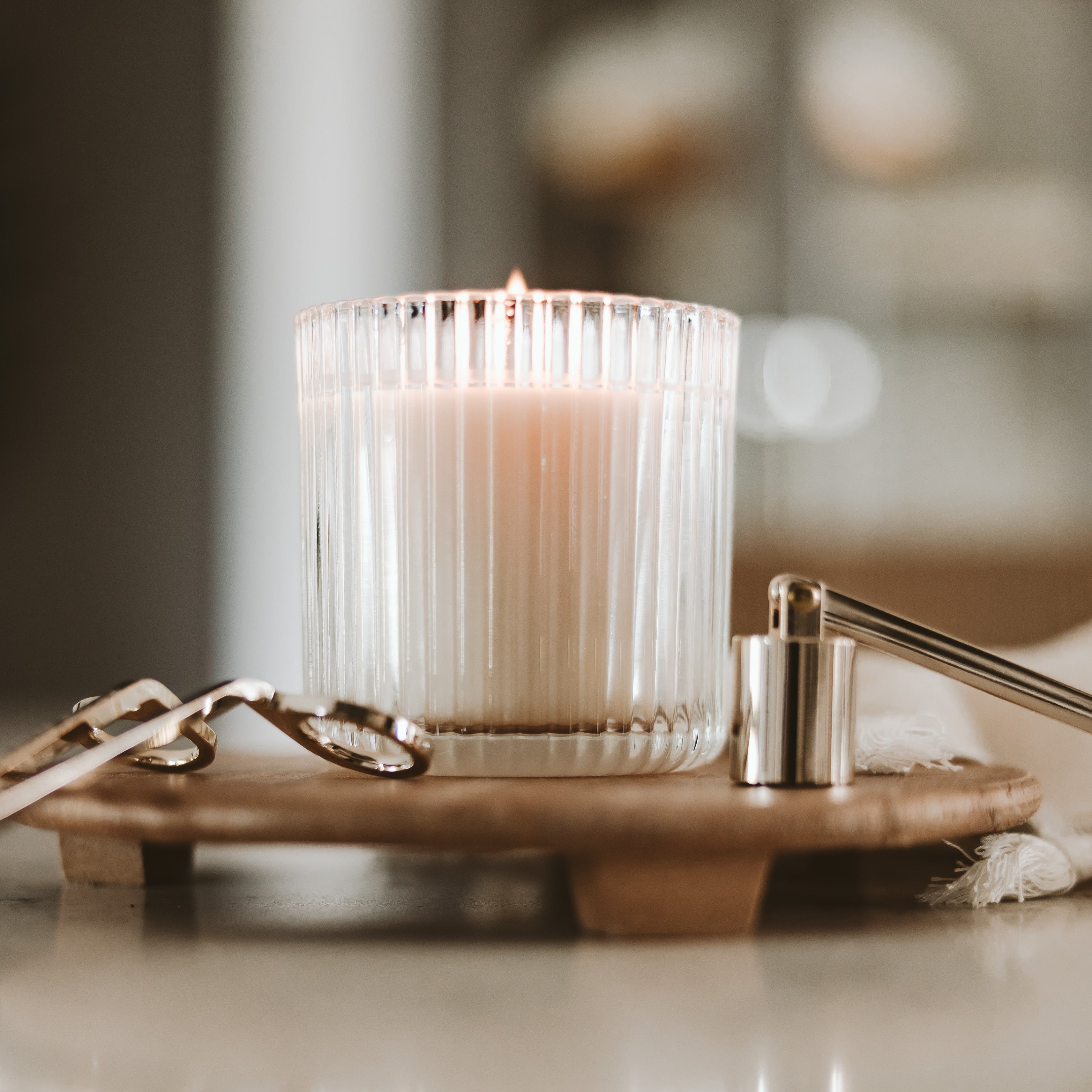 Enjoy this luxurious scent in a ribbed glass jar that will instantly upgrade any space.